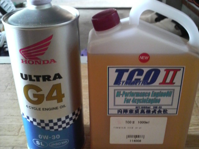 今回はさらにグレードアップして、ホンダ純正オイルG4を入れます^^0w-30です。遠心なので薄い方が良いので。
