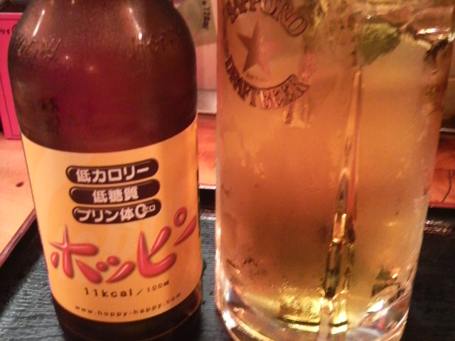 生中を頼んだ後は必ずホッピーです。飲みやすいしプリン体〇が魅力です。