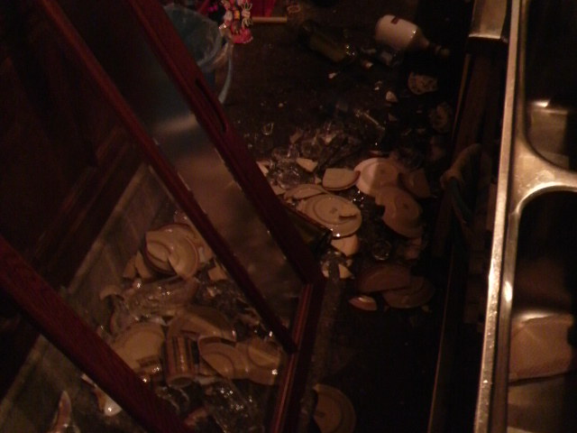おいおいカットグラスなど高価なものがガシャ~~ン